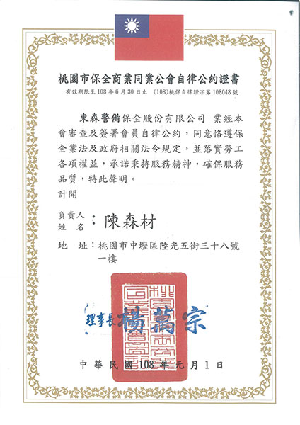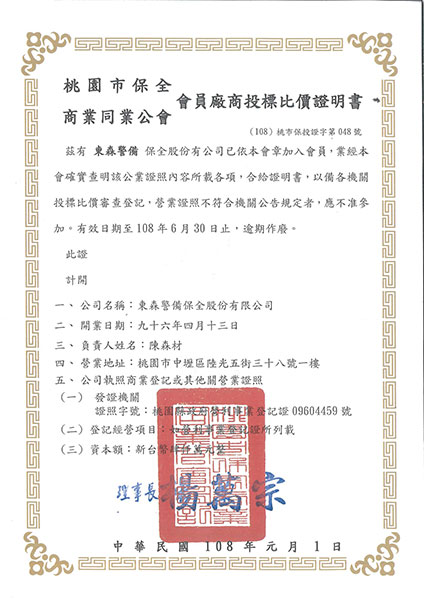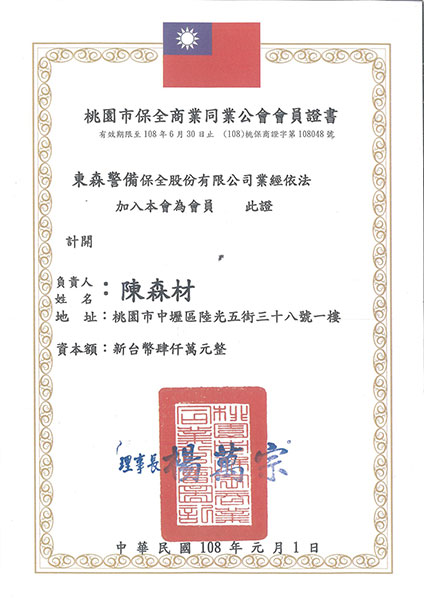 108年保全公會會員證書