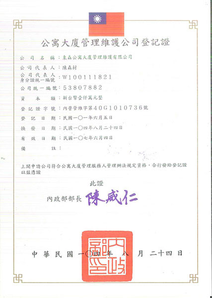 公寓管理維護公司登記證